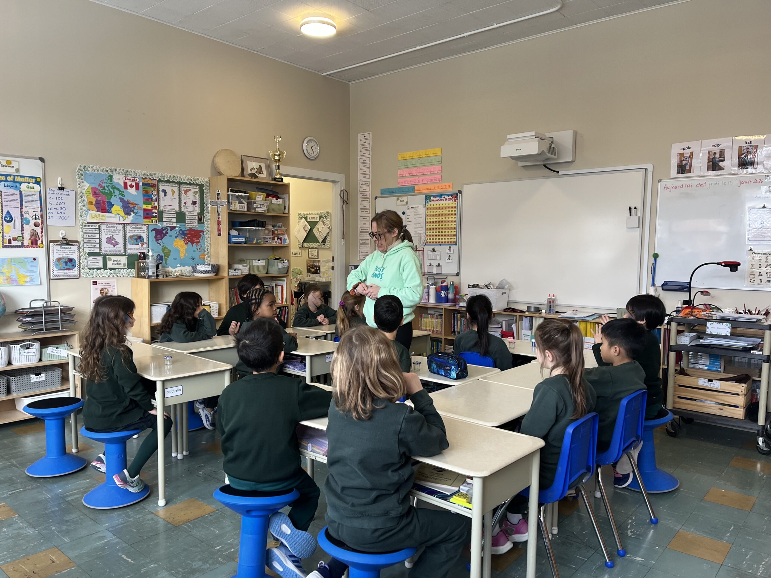 Our JK, SK, Grade 1, and Grade 2 students participated in a classroom-based mindfulness yoga session focused on recognizing and regulating emotions.